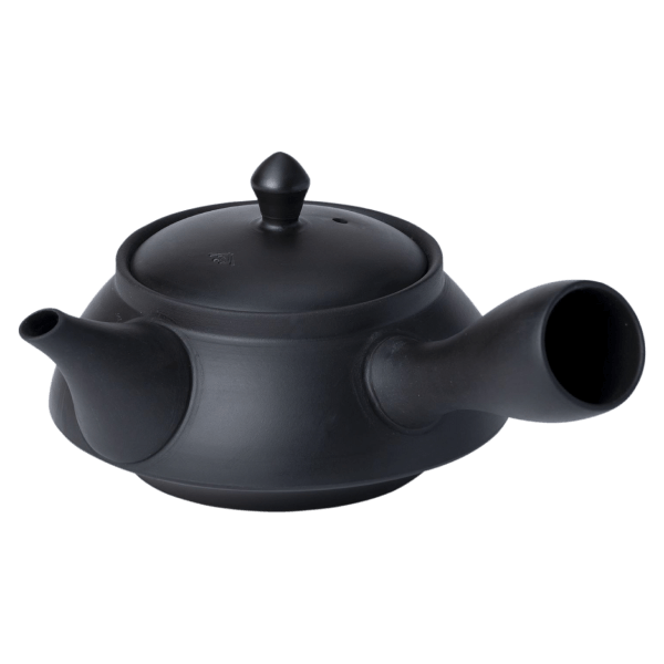 A beginner-friendly kyusu with a sleek black color and a smooth texture.
